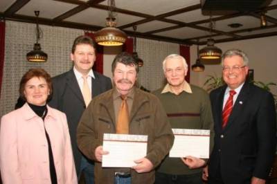 Wilfried Kahle, Wilhelm Heidemann und Stefan Porscha ehrten Heinrich Baldrich, Hans-Jürgen Husen und Helmut Wiebking für 25 Jahre Mitgliedschaft